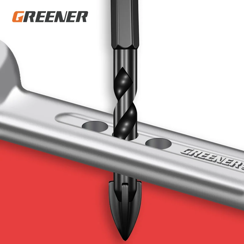 GREENER 3-12mm Four-blade Concrete Impact Glass Drill Cross Hex Tile Drilling Bit Special For Hexagonal Shank Hard Alloy Tri 8mm